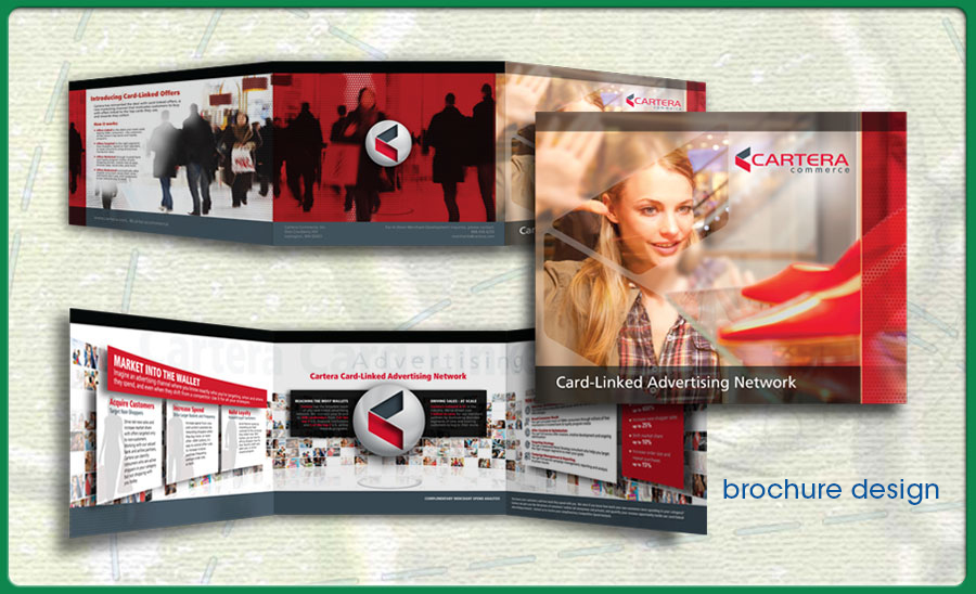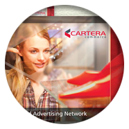 Cartera is a creditcard awards benefits company.This design shows a woman looking through a store window at her next pair of shoes with the help of cartera. The window is in the shape of the cartera logo.