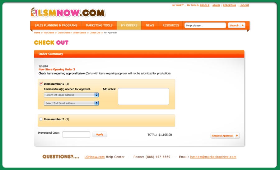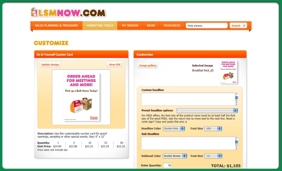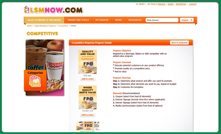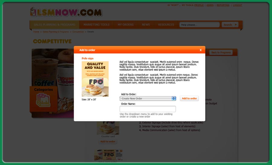 an application for franchice owners and store managers so that they can order online all the sales collateral and almost everything else they might need to run a store promotion