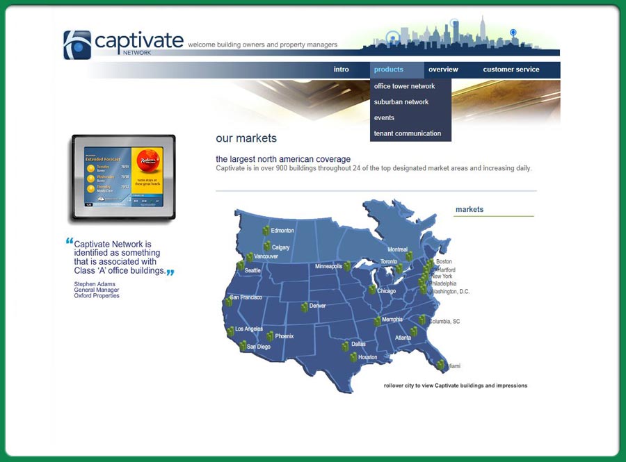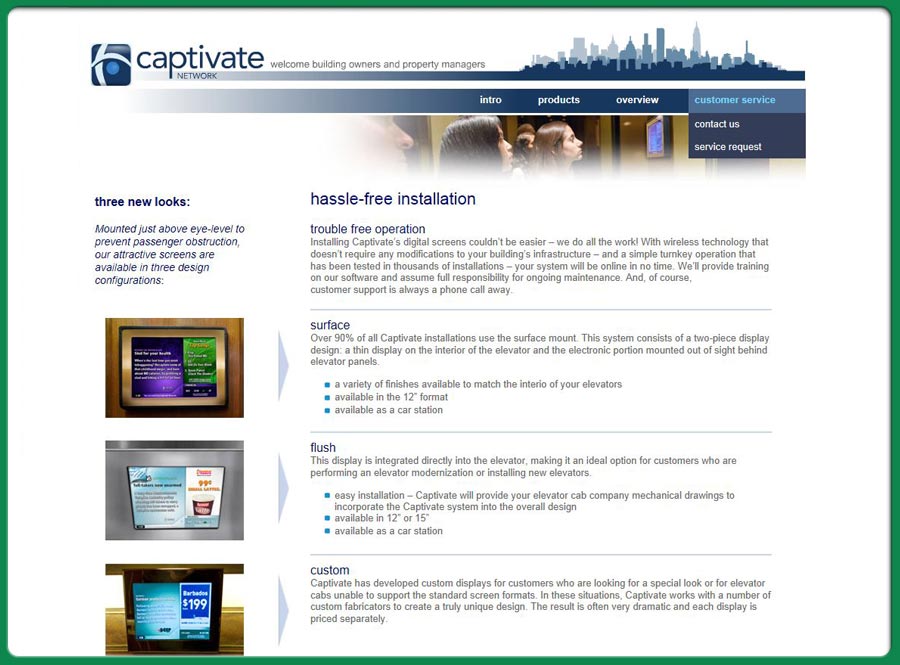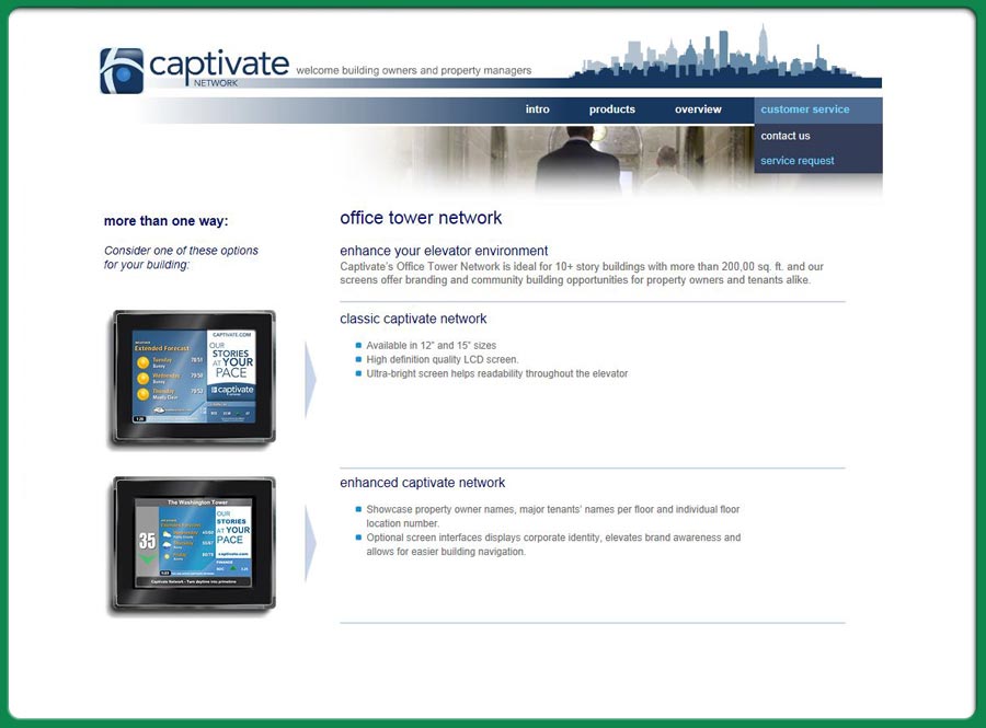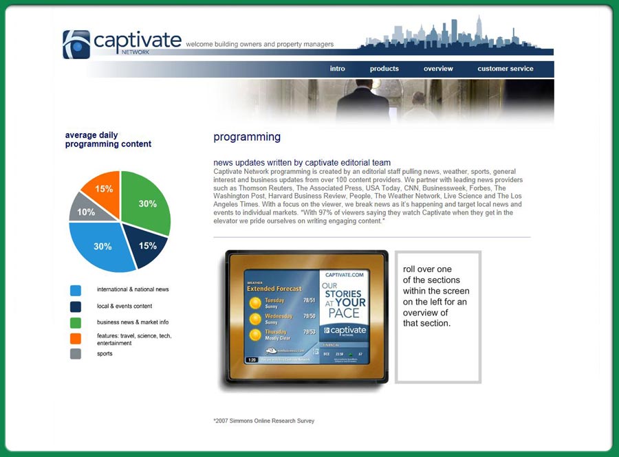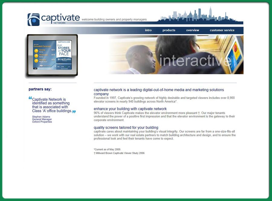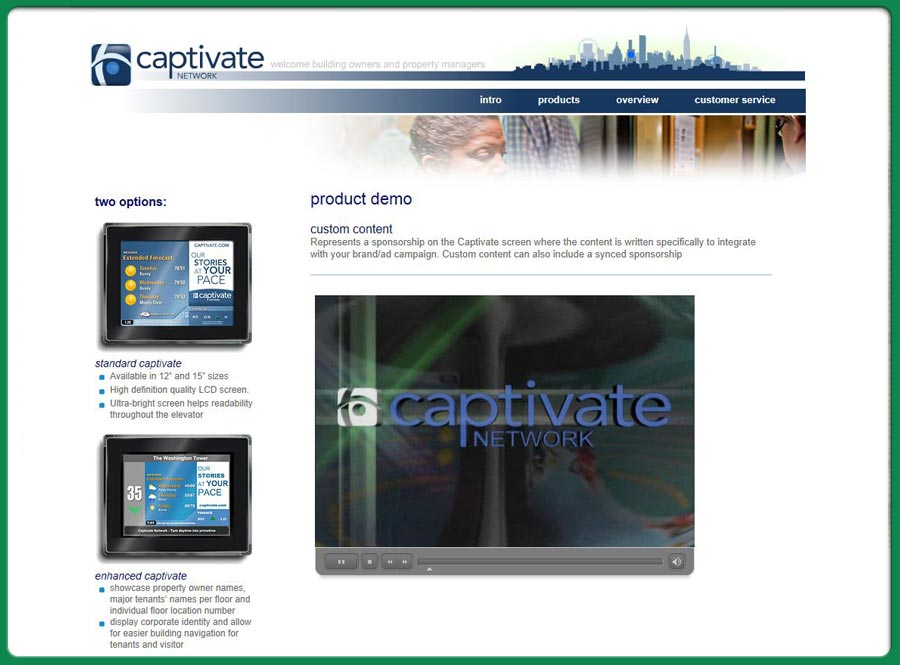web-site for a company that delivers interactive media within a corporate and elevator enviroment